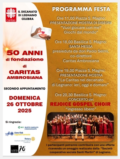 Domenica 26 ottobre, secondo appuntamento di festa per i 50 anno della Caritas