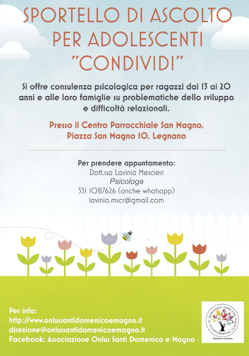 Condividi: Sportello di Ascolto per Adolescenti della nostra onlus