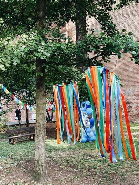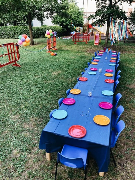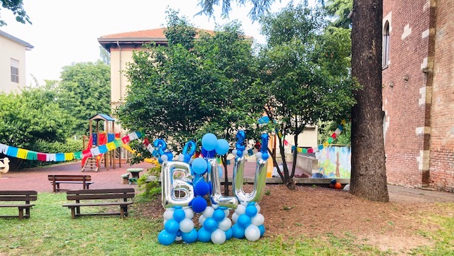 Al loro arrivo i bambini hanno trovato il giardino addobbato con fantastiche composizioni di palloncini e decorazioni colorate, una tavola allestita a festa, musica e ovviamente le loro insegnanti!