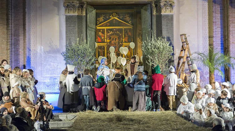 Davanti al sagrato della nostra Basilica a partire dalle 17 si svolgerà la rappresentazione vera e propria messa in scena dagli alunni di quinta che interpretano i personaggi principali del presepe (Maria, Giuseppe, Erode, i Re Magi…), dagli alunni di prima, gli angioletti, e da tutti gli altri alunni della scuola che indossano gli abiti della gente che ricevuta la lieta notizia si reca ad adorare il bambino. La rappresentazione è “impreziosita” dai canti del coro della scuola, guidato dall’insegnante di musica Sara Pezzotti.