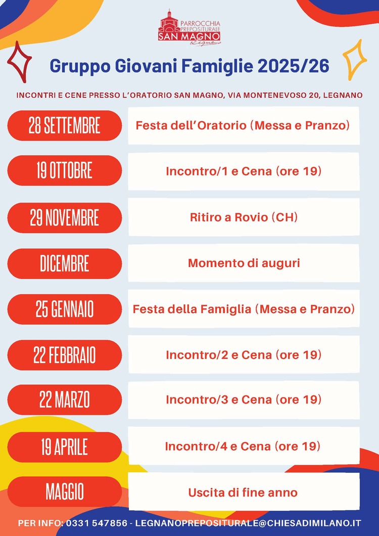 Gruppo Giovani Famiglie - Programma degli incontri