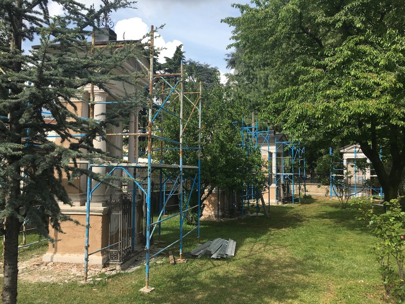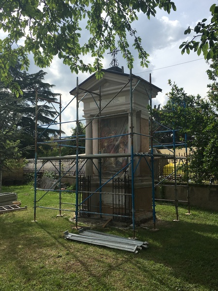 Negli anni ’80 del Novecento, le immagini, nuovamente deteriorate, furono rifatte con la tecnica del mosaico a tessere vitree e si procedette ad una sistemazione del giardino che fu completata nel 1997.